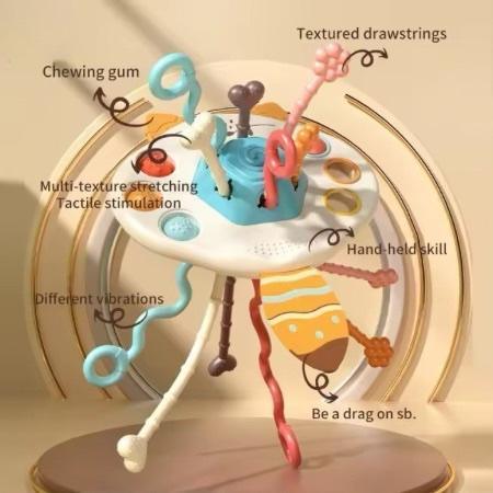 La Jalapita Montessori Sensorial es un juguete didáctico diseñado para estimular la motricidad fina, coordinación y exploración sensorial en bebés desde los 6 meses. Sus cuerdas y jaladores de diferentes texturas invitan a jalar, estirar y manipular, favoreciendo la concentración, la calma y el desarrollo sensorial a través del juego.