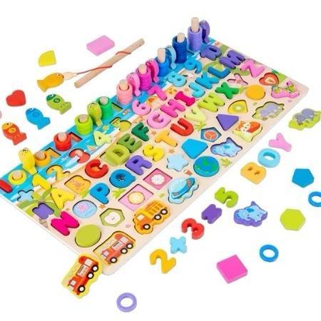 🟡 Estímulo Multifacético: Nuestro Tablero Montessori 6 en 1 abarca una gama diversa de aprendizaje, desde el reconocimiento de números y colores hasta conceptos como medios de transporte, números, figuras geométricas, conteo, abecedario y pesca. Cada actividad está diseñada para captar la imaginación y el interés de tus pequeños exploradores.